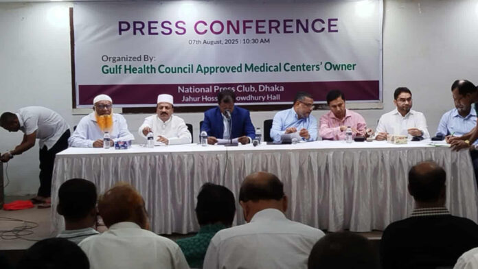বৃহস্পতিবার (৭ আগস্ট) জাতীয় প্রেসক্লাবে এক সংবাদ সম্মেলনে গালফ হেলথ কাউন্সিল অনুমোদিত মেডিকেল সেন্টারের মালিকরা এ অভিযোগ করেন।