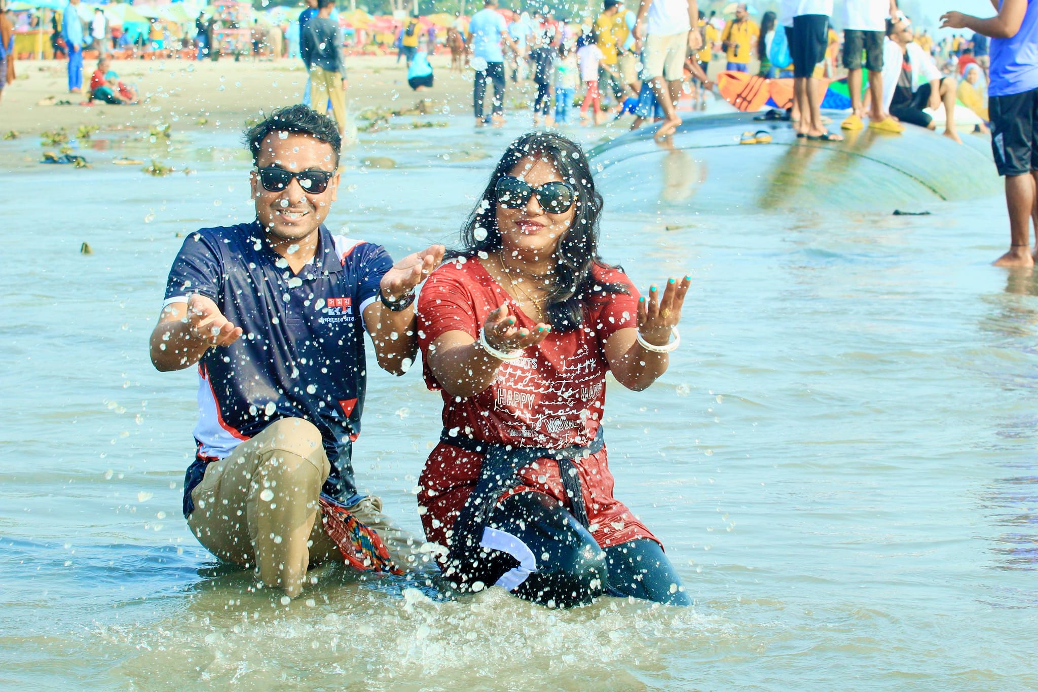 তীব্র তাপপ্রবাহে কুয়াকাটা সমুদ্র সৈকতে ভ্রমণপিপাষুদের জলকেলি। ছবি: হেলথ সলুশন