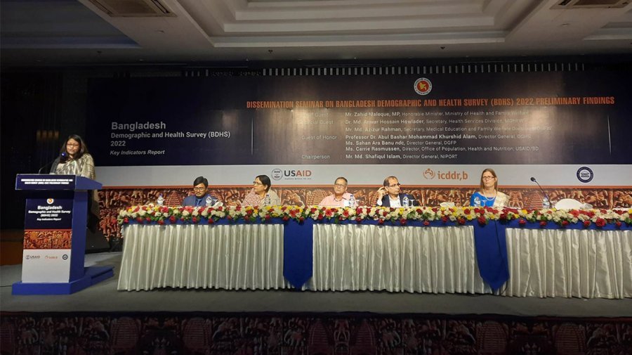 সম্প্রতি রাজধানীর হোটেল রেডিসন ব্লুতে বাংলাদেশ ডেমোগ্রাফিক অ্যান্ড হেলথ সার্ভে (বিডিএইচএস) ২০২২-এর প্রাথমিক ফলাফল প্রকাশ অনুষ্ঠানে এ তথ্য দেওয়া হয়।
